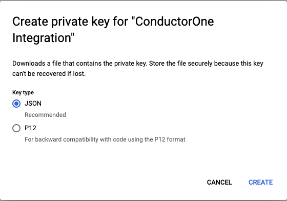 - Service account description: for example, “Service account for ConductorOne Google Workspace Integration”