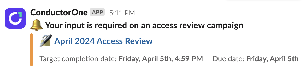 During an access review campaign, the campaign owner can send notifications to fellow campaign owners and reviewers in a new or existing Slack channel.1