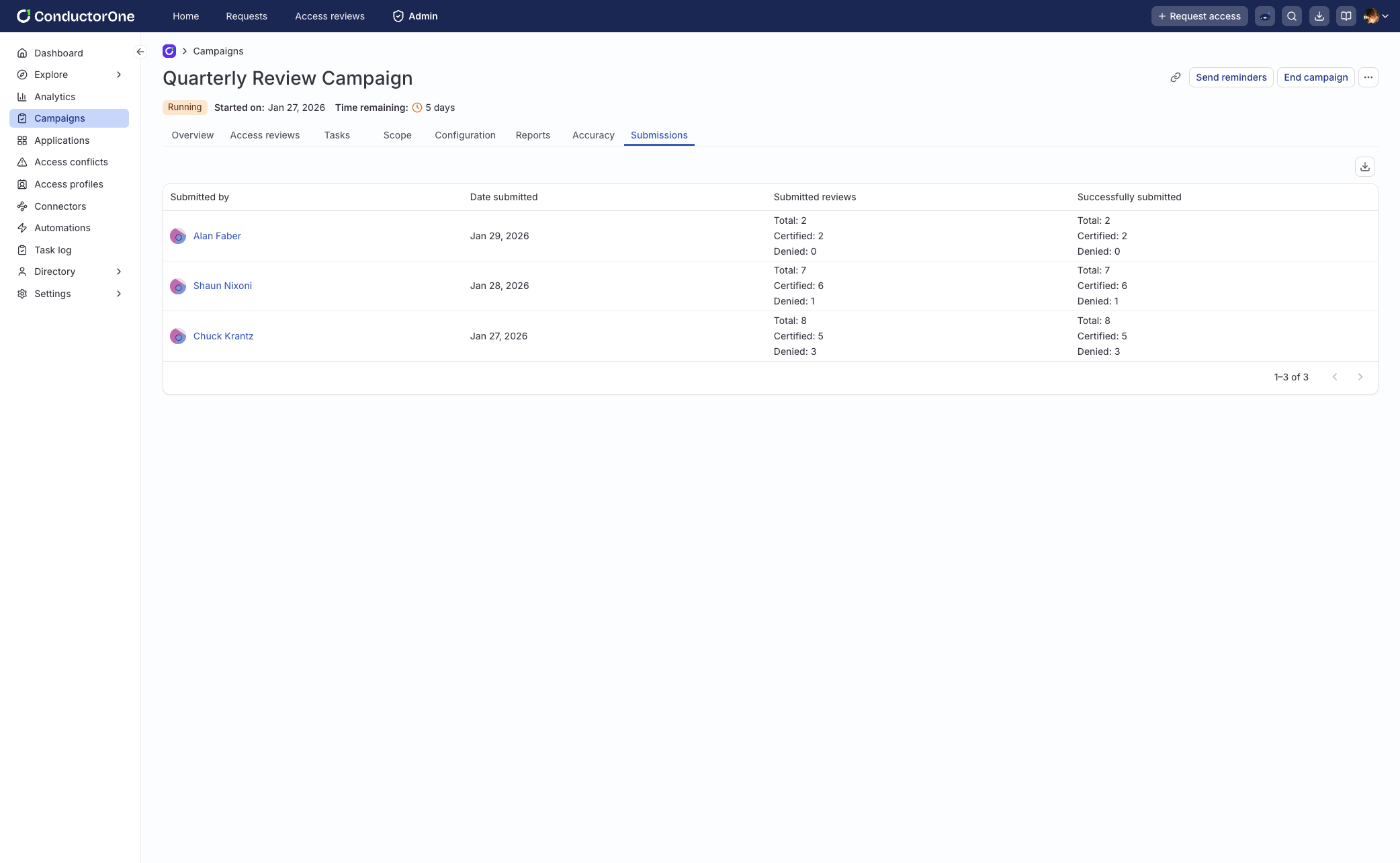 In January, we introduced batch submission for access reviews to better match how reviewers actually work. Reviewers can now make decisions incrementally, review them holistically, and submit everything at once when ready. This reduces context switching and makes large or complex campaigns feel more manageable.